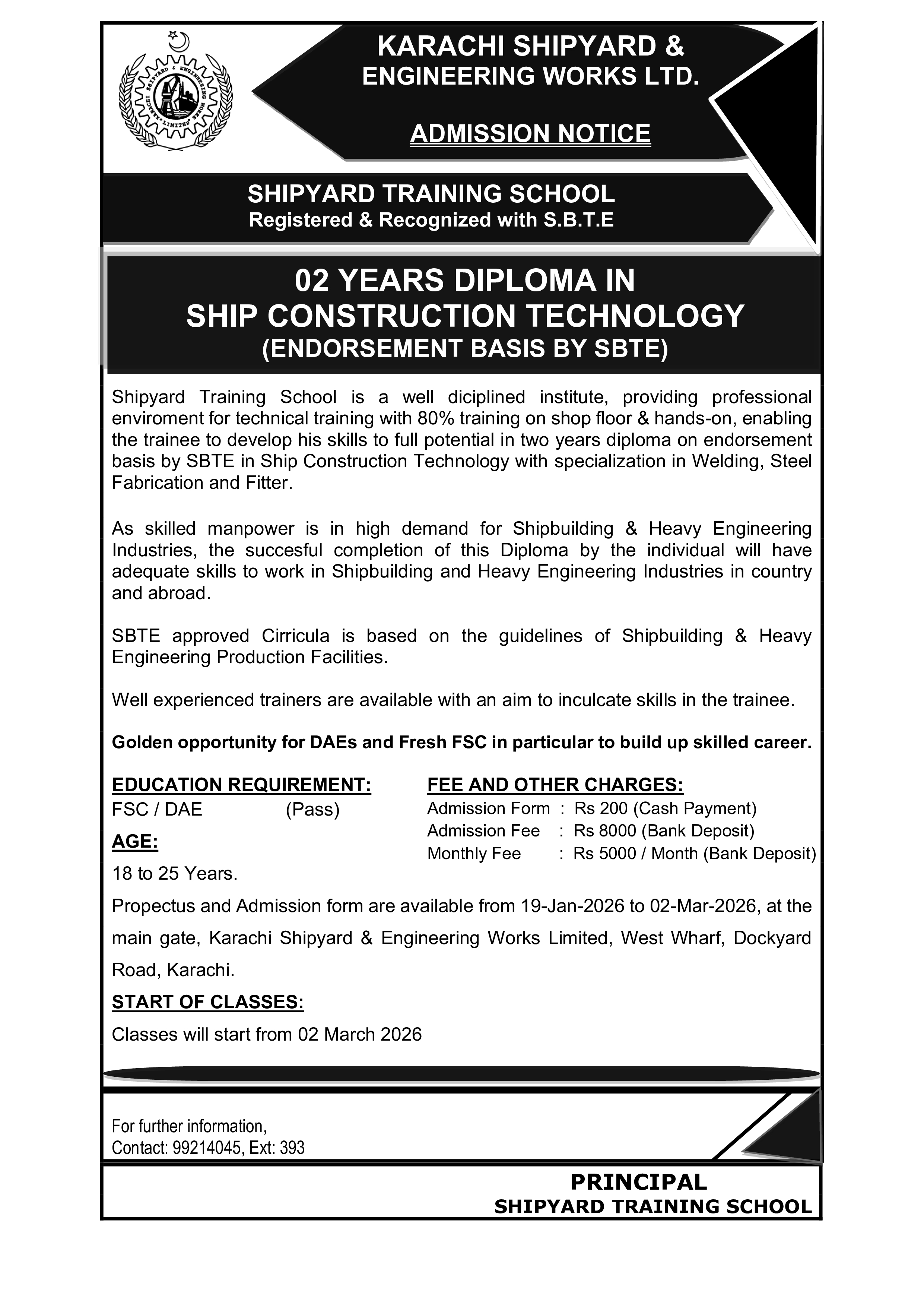 KS&EW is the only shipbuilding company in Pakistan. It has built numerous cargo ships tugboats, support vessels, naval vessels and submarines.